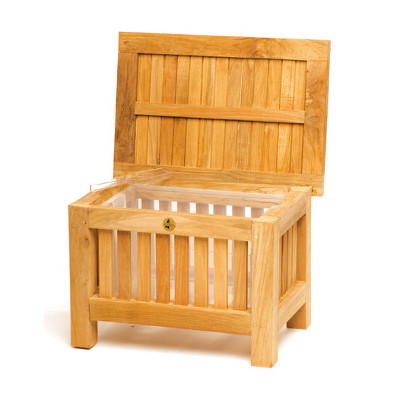 For waste and divot repair Pattisson has created unique Teak bins with solid hinged lids for easy accessibility